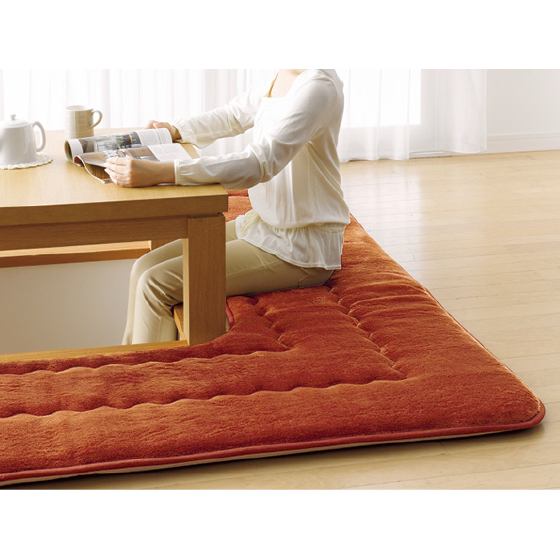 座布団みたいなボリューム感!保温性とクッション性を兼ね備えたふっくらとした厚み。座布団不要でこたつ回りがすっきりします。