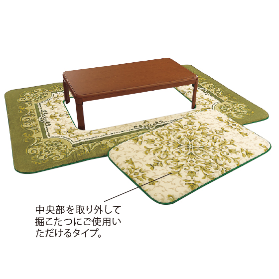 ※洗えない敷物のお手入れ方法:軽い汚れは中性洗剤を浸して固く絞った布でたたくように落としてください。※生地幅の関係上ハギ(つぎ目)が入ることがございます。また裁断の都合により柄の出方が多少異なりますので、あらかじめご了承ください。