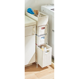 ランドリーで使いやすい高さ。よく使うものは、一番上のオープンスペースに。リビングの小物収納にも。キャスター付きで移動もスムーズ。