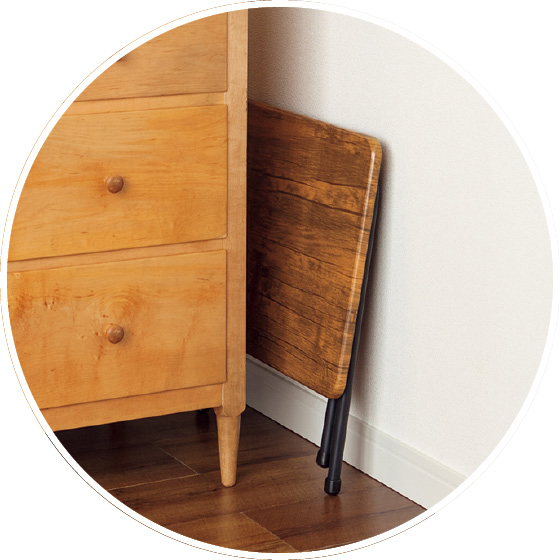 ソファ使用時のサイドテーブルとして重宝しています。組み立ても簡単ですし、必要ない時はたたんで置いておけて、スペース的にも邪魔になりません。
