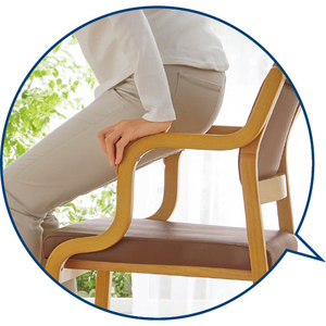 サイドフレームのグリップを握ることで安定感よく立ち座りができます。