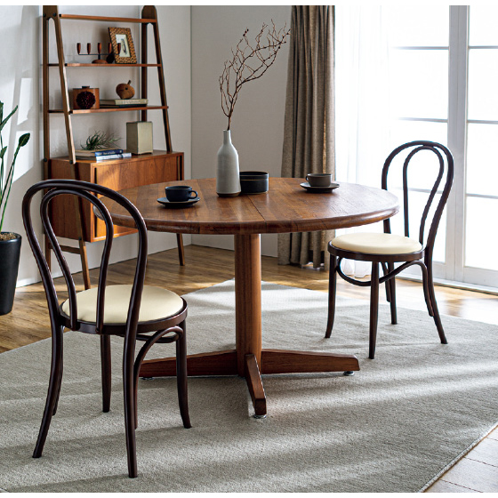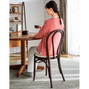 曲木工法は、天然の無垢材を煮沸し、鉄の金型に沿って曲げて成型します。この技術から、継ぎのない1本木の、人間の体の線にもなじむ美しい曲線と堅牢で安定した上質の座り心地とが生みだされます。手間のかかる手作業をいとわぬ職人のこだわり。均整のとれたそのやわらかく温かいフォルム。この椅子が逸品として世代を超え愛され続ける由縁です。