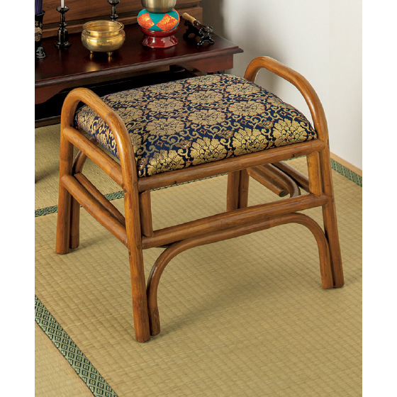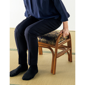 立ち座りしやすく、持ち運びにも便利なアーム付き。軽く丈夫なラタン素材で4脚までスタッキングが可能。