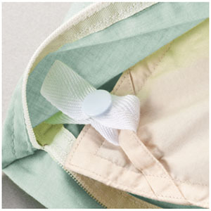 掛けカバーはぱっちんと留めるだけのスナップボタン式。手間が省けて外れにくくなっています。