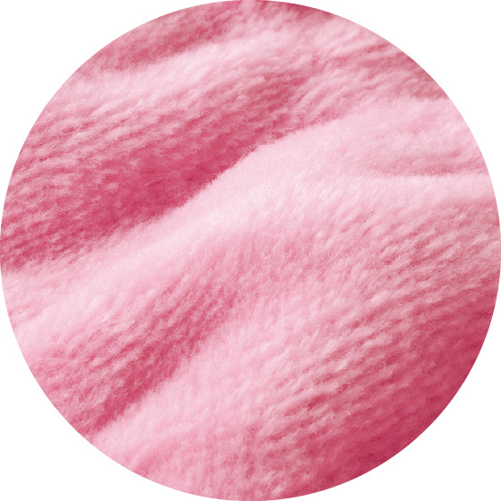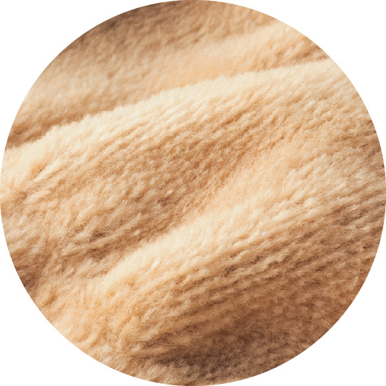 起毛部分の毛足が長く、さらに厚みをもたせて肌触りを暖かく。