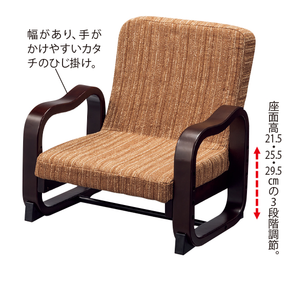 ●サイズ:幅56.5×奥50.5×高56〜64(座面=幅44.5×奥34×高21.5・25.5・29.5)cm、折りたたみ時=幅56.5×奥40×高35〜37.5cm