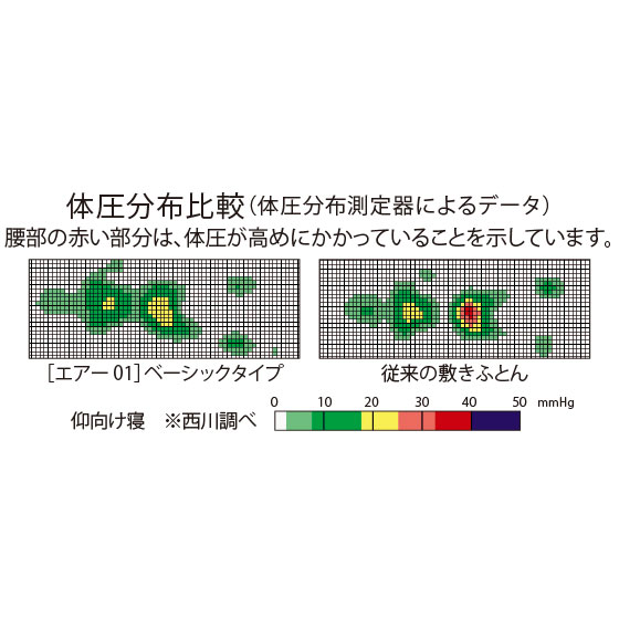 [エアー01]マットレスは、快適な睡眠へと導く特殊立体波形凹凸構造で寝具の老舗西川が開発。敷き寝具に求められる「体圧分散」と「寝姿勢保持」の機能を高めることで、快眠をしっかりサポート。