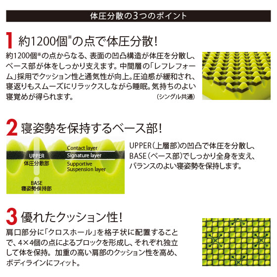 体圧を分散し寝姿勢を保持!眠り心地に差がつく。