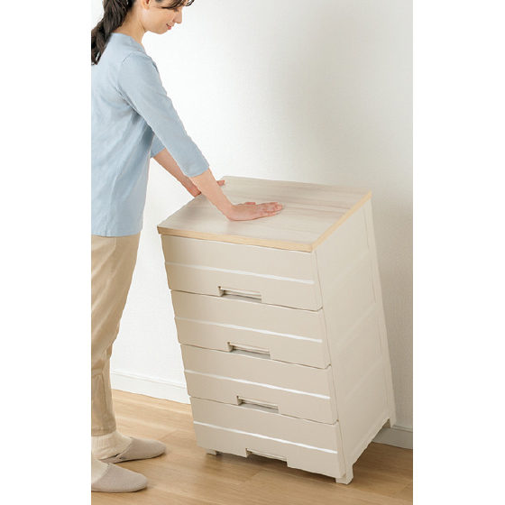 ●材質:本体・引き出し・ロック・ローラー・前パネル=ポリプロピレン、脚=ポリプロピレン・ポリエチレン(すべり止め)、天板=パーチクルボード・MDF強化ハニカム・スチール留め具(紙シート・PVC木口貼り仕上げ)