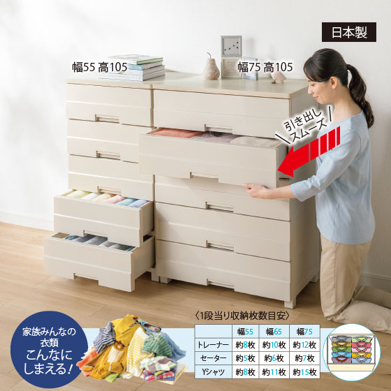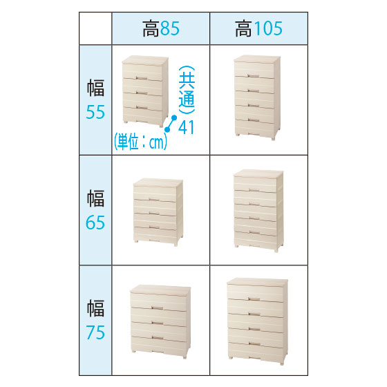 ●耐荷重:天板=10kg、引き出し=幅55/4kg、幅65/5kg、幅75/6kg(1段当り)