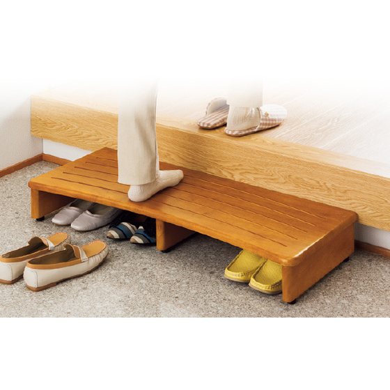 玄関の段差を軽減!昇り降りがスムーズ!すべりにくい溝加工も。ガタつきを防ぐアジャスター付き。下には靴も収納OK。
