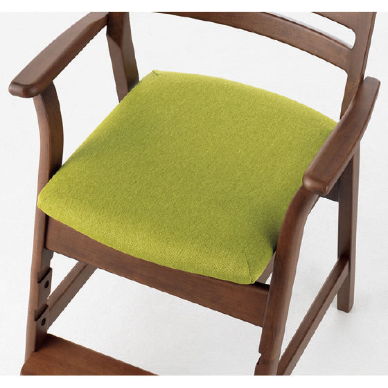 成長に合わせて変えられる足置きの高さ。大人なら、外すもよし、カウンターチェア風に使っても快適。1・2段目の座面を前傾に調節すると、背すじものび集中力もUP。