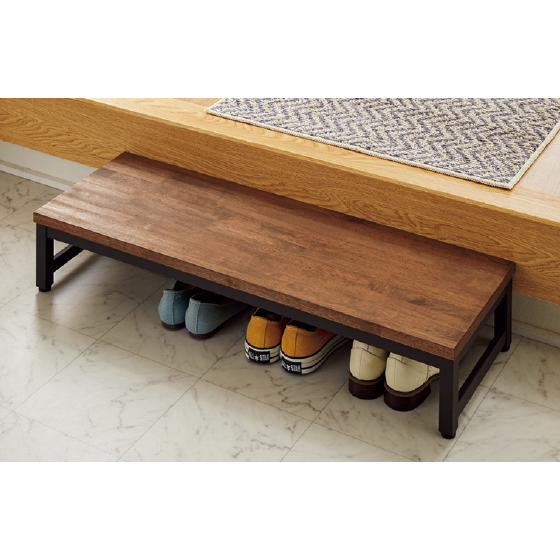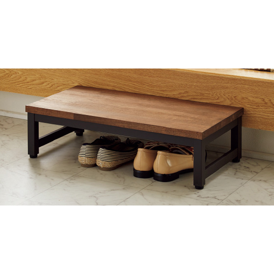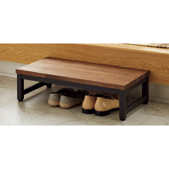 ラバーウッド材×スチール脚の丈夫な玄関踏み台。和洋どちらの玄関にも合うデザイン。
