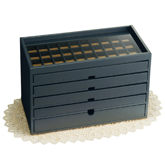 最上段はアクリル天板で、お目当てがすぐに探せる!※引き出し内の仕切り板は取り外し可能です。