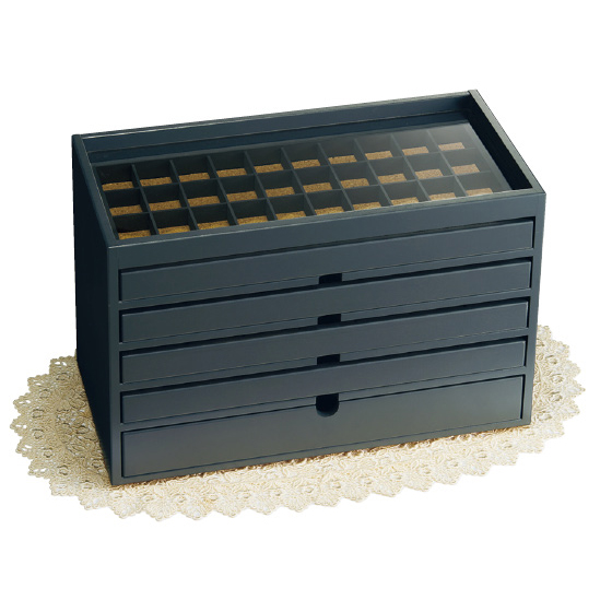 ●材質:中質繊維板(ラッカー塗装)、天板部=アクリル、引き出し内部=コルク張り