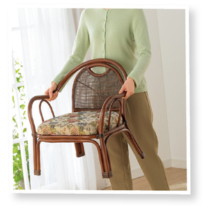 軽いので持ち運びがラク!立ち上がりやすいひじ掛け付き。