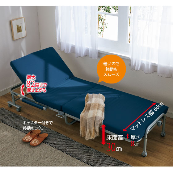 ●サイズ:<ベッド>幅77×長190×高30.5(床面高30)cm、<マットレス>幅66×長182×厚8cm
