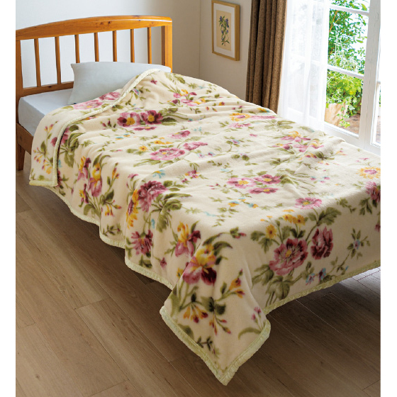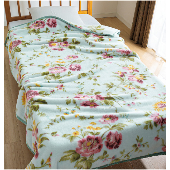 保温性、耐久性に優れたアクリル素材を使用。アクリル繊維本来のボリューム感と肌触りはそのままに、軽くて暖かい毛布に仕立てました。