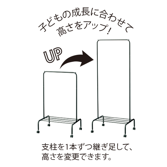 子どもの成長に合わせて高さをアップ!支柱を1本ずつ継ぎ足して、高さを変更できます。