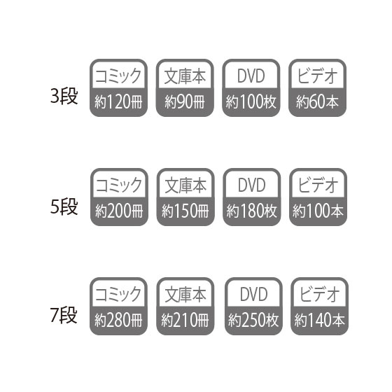 ●棚板:3段=2枚、5段=4枚、7段=6枚