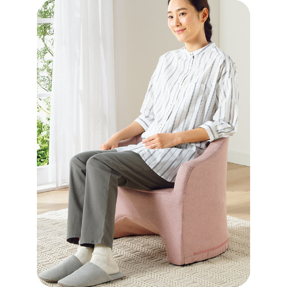 軽いけどつくりしっかり!軽さと強度を両立する、モールド成形。ほどよい高さとひじ付きで立ち座りがラク。