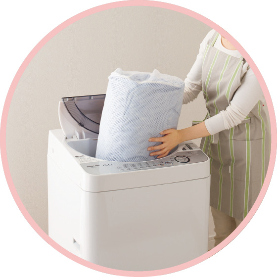 ※洗濯の可否・方法は各商品の洗濯表示をご確認ください。洗濯時にはネットをご使用ください。ご家庭の洗濯機に入らない場合がございますので、取扱説明書をご確認の上、難しい場合は手洗い、またはふとんが洗えるコインランドリーをおすすめいたします。※寝具商品は、生地幅の関係上ハギ(つぎ目)が入ることがございます。また裁断の都合により柄の出方が多少異なりますので、あらかじめご了承ください。※ふとん(特に敷きふとん)は使用状況によって、程度の差はありますが、必ずヘタリ(ボリューム感や弾力性がだんだんなくなる状態)が商品の特性上発生します。ご了承ください。