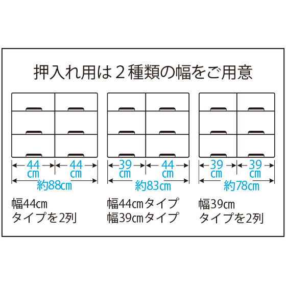サイズが豊富で、押入れやクローゼットのすき間に合わせて組み合わせ自在。