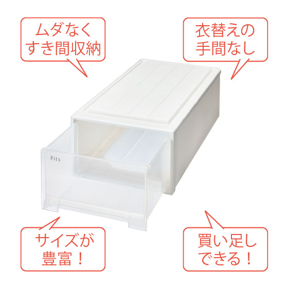 押入れやクローゼットのすき間に合わせて組み合わせ自在。ベッド下の収納ケースにも便利です。