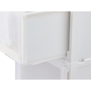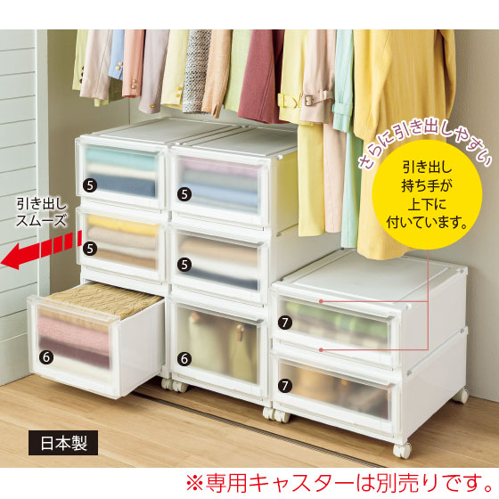 ●材質:天板・外枠・引き出し=ポリプロピレン、前パネル・前倒れ防止用ジョイント具=スチロール樹脂、ゴム脚=エラストマー、補強板=アルミ