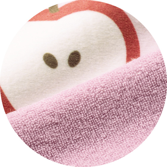 通年気持ちいい両面仕様。マイクロ面はもちもちなめらかな肌触りで秋冬に◎。パイル面はソフトな肌触りで、年中快適。※パイル面は無地です。