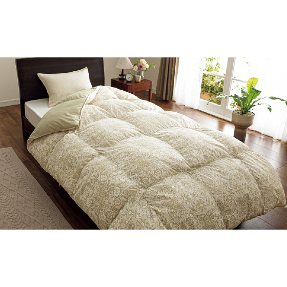 ●素材:側地=ポリエステル85%・綿15%、詰めもの=ポリエステル100%(中空糸1穴使用、シングル=1.6kg、ダブル=2.2kg)
