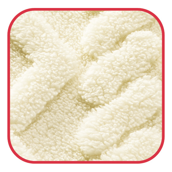 やわらかフランネル。立体感のあるニット調。もこもこかわいいシープ調ボアの縁取り。
