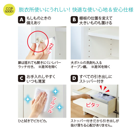 脱衣所使いにうれしい!快適な使い心地&安心仕様。
