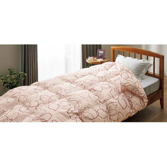 保温性に優れたやわらかな風合いの中空繊維が、暖かい空気をしっかりと包み込むことで、一般的な羽毛ふとんと同様の暖かさを実現しました。ほこりも出にくく、洗濯機で丸洗いできます。