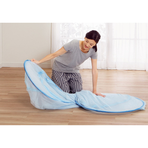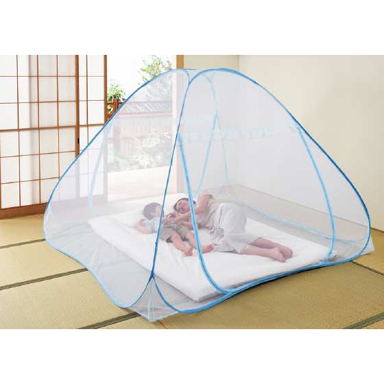 薬剤なしで虫よけできる蚊帳は、快適に過ごすための先人の知恵。開閉や収納をより簡単にして、テント気分で楽しめる仕様にしました。底面も覆われているので、下からの虫の侵入も防ぎます。