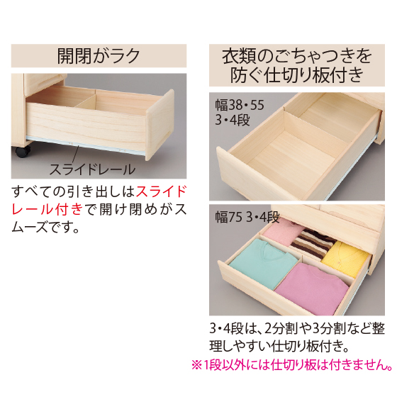 ●材質:桐集成材(ロウ引き仕上げ)、底板・背板=桐合板