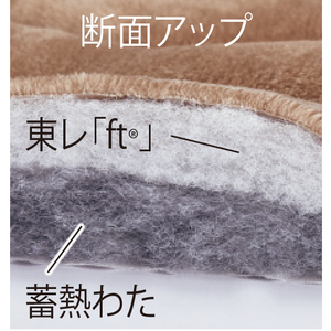肌面に触れた瞬間から暖かいフランネルリッチ糸を使用。上層部に東レ「ft(R)」、下層部に蓄熱わたを使用した2層構造の中わたで、暖かさと寝心地をさらにアップ。