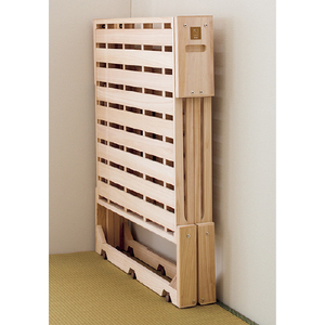 桐の軽さを活かした、移動や収納がラクな折りたたみ式ベッド。どなたでも立ち座りがしやすいよう高さにも工夫を施しました。総桐ならではのほのかな香りと、やさしい手触りも魅力です。