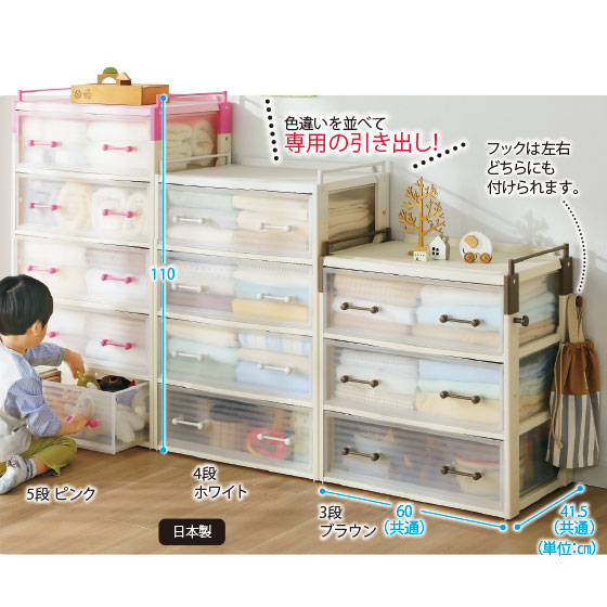 ●サイズ:幅60×奥41.5×高69.5(3段)・90(4段)・110(5段)cm