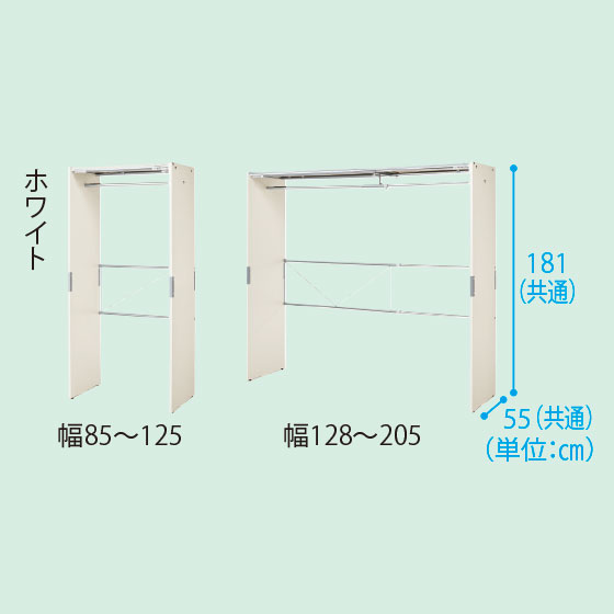 幅128〜205cmまで伸縮。お部屋のサイズに合わせられる!