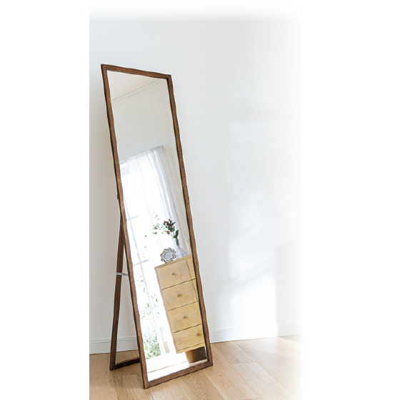 天然木のシンプルなフレームが魅力。日本製の全身ミラー。