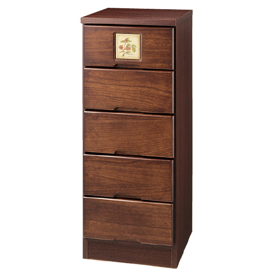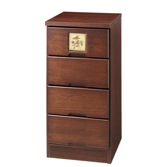 引き出し中央にあしらった花柄の陶板タイルがおしゃれ。