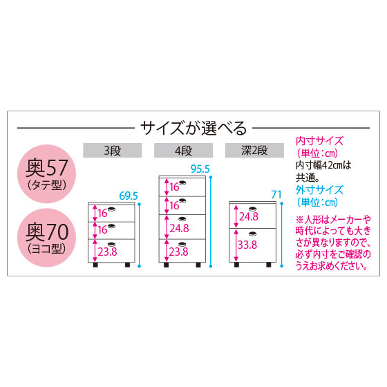 ●サイズ:幅45×高69.5(3段)・95.5(4段)・71(深2段)cm