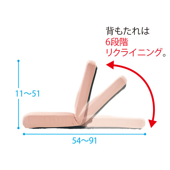 背もたれは6段階リクライニング。