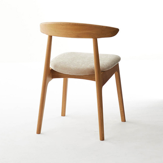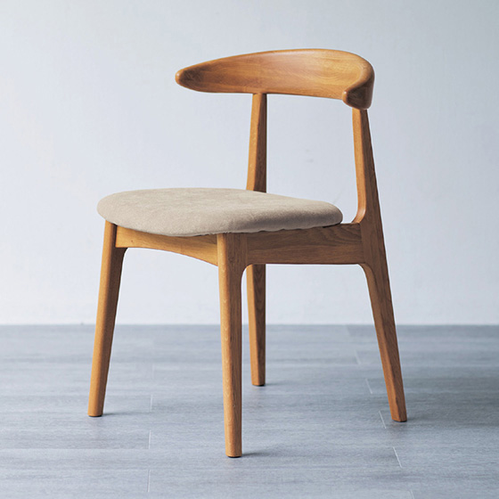 木目の美しいオーク材を使用。座面は布製で、ほどよくクッション性があります。