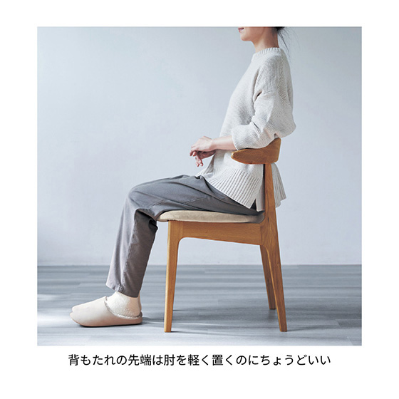 きれいな曲線を描くことで背中をすっぽり包み込むダイニングチェア