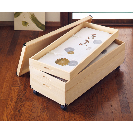 総桐で移動がラクなキャスター付きの衣裳箱。