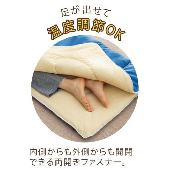 ●寝袋にL字ファスナー付き(両開きファスナー)