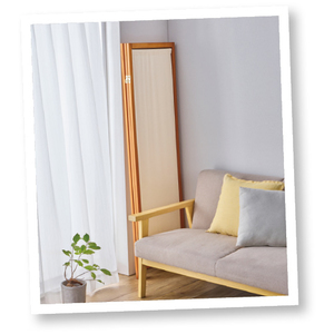 サッと広げて空間の仕切りができるうえ、置くだけでお部屋の雰囲気を明るく変えられる帆布生地のスクリーン。寝室やデスク周りにも。