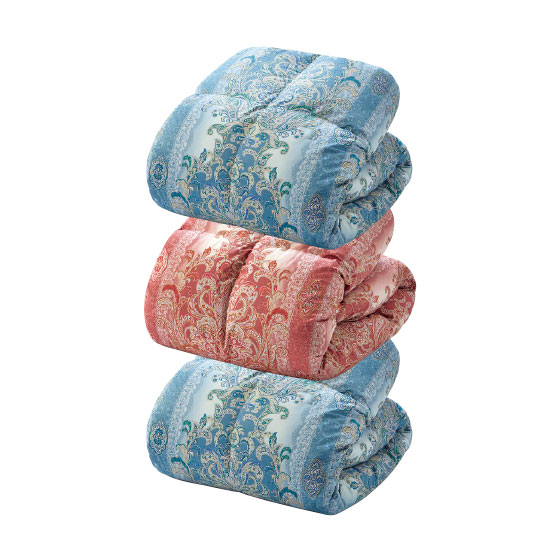 ※ふとん(特に敷きふとん)は使用状況によって、程度の差はありますが、必ずヘタリ(ボリューム感や弾力性がだんだんなくなる状態)が商品の特性上発生します。ご了承ください。※寝具商品は、生地幅の関係上ハギ(つぎ目)が入ることがございます。また裁断の都合により柄の出方が多少異なりますので、あらかじめご了承ください。